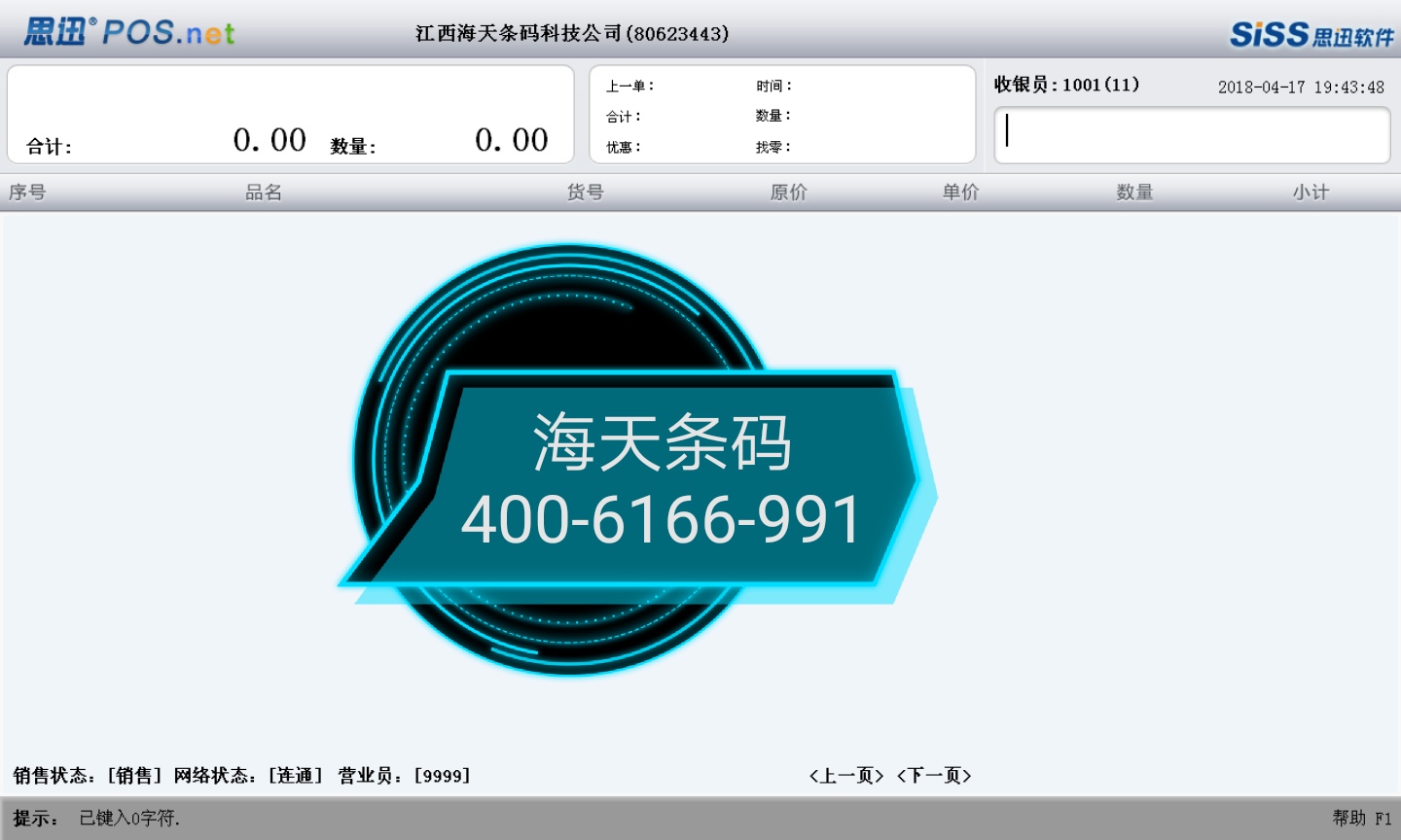 前台POS系统:前台POS除正常销售外,还提供了丰富的业务功能,例如:取消销售记录、前台退货、赠送、折扣、修改口令、挂单、手工/自动开钱箱和前台日结等等,支持两种编码销售,提供多币种和多种付款方式。